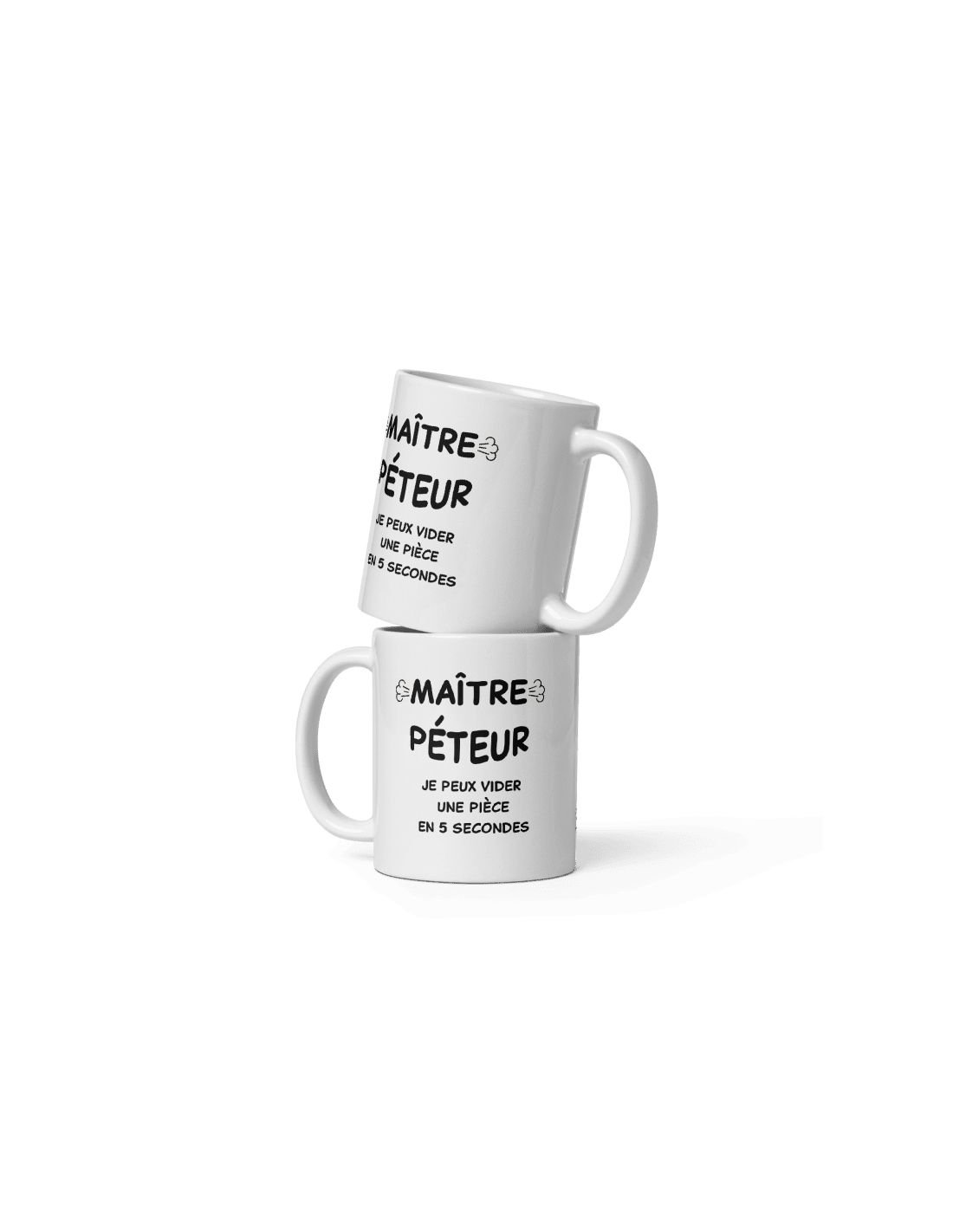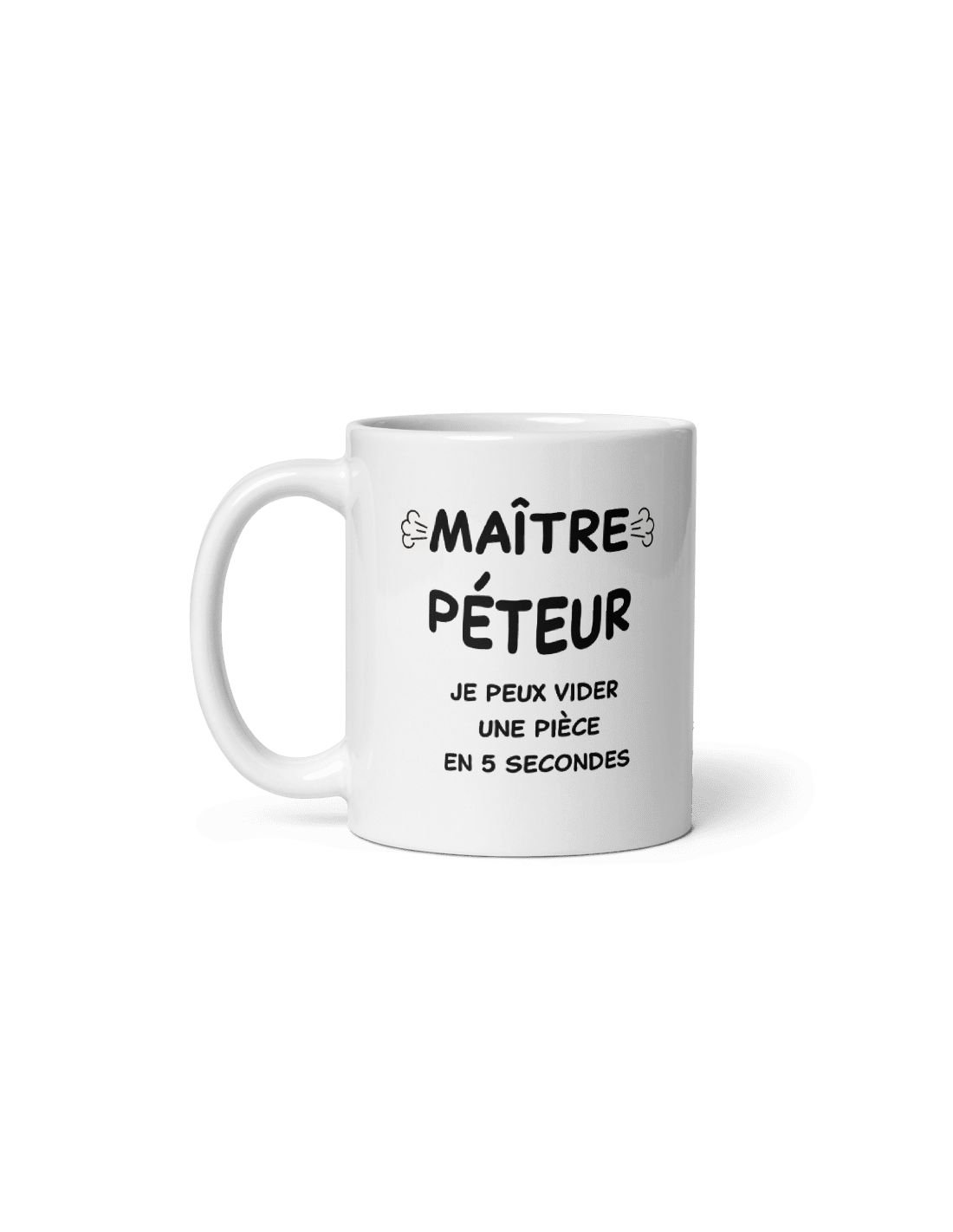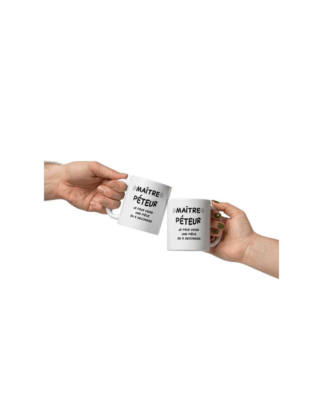 Le mug cadeau humour par excellence pour les amateurs de blagues. Maître péteur , je peux vider une pièce en 5 secondes.