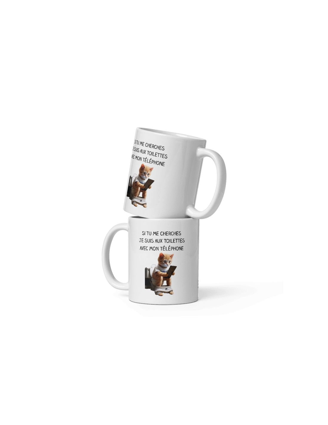 Le mug cadeau humour pour une personne qui reste longtemps aux toilettes avec son téléphone . Ce personnage sympathique déclenche les sourires et la bonne humeur , un présent rigolo et original à offrir à une amie ou un membre de la famille.