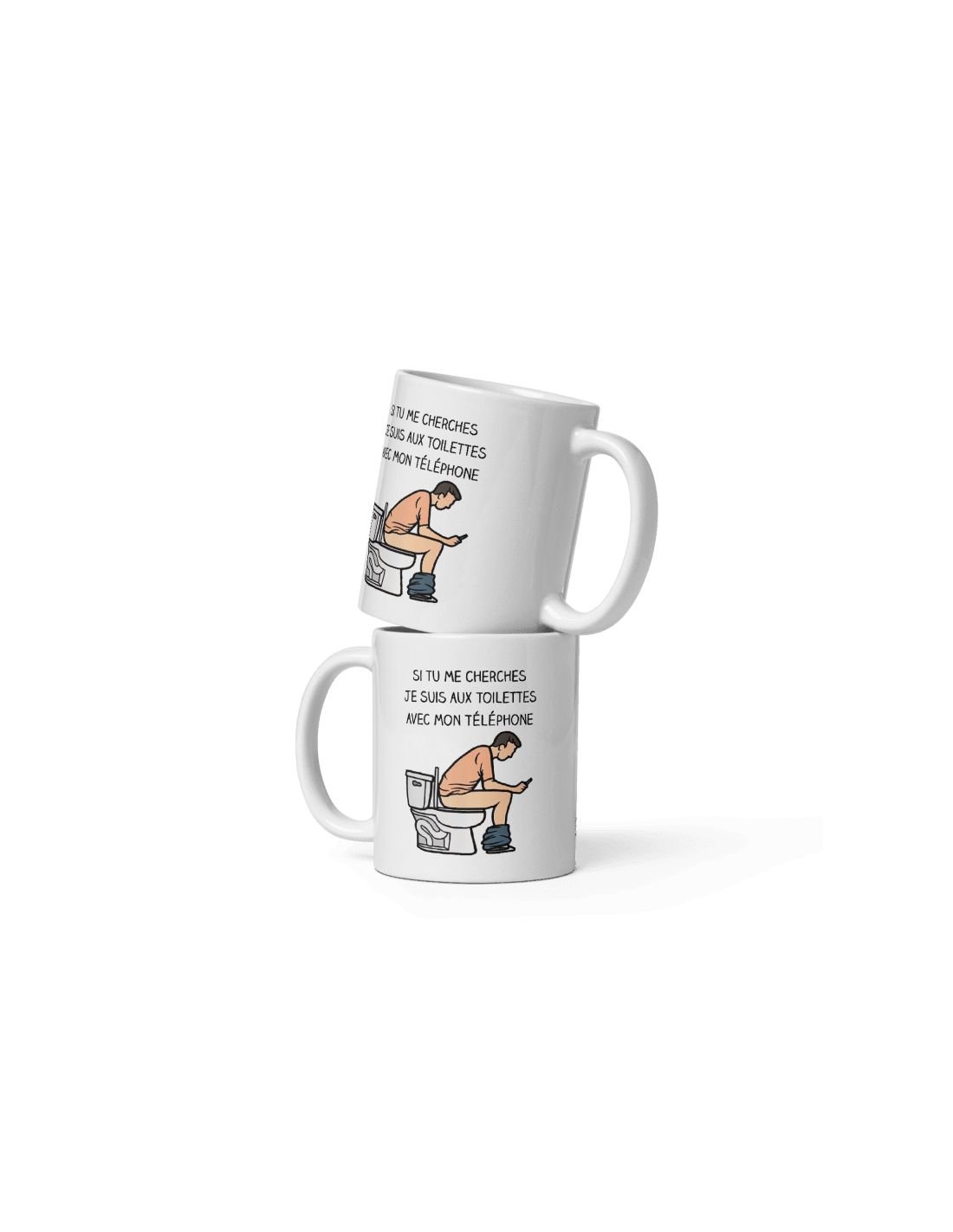 Le mug cadeau humour pour une homme qui est toujours aux toilettes avec son téléphone . Ce personnage sympathique déclenche les sourires et la bonne humeur , un présent rigolo et original à offrir à son papa , son mari , et tous les hommes de la famille.
